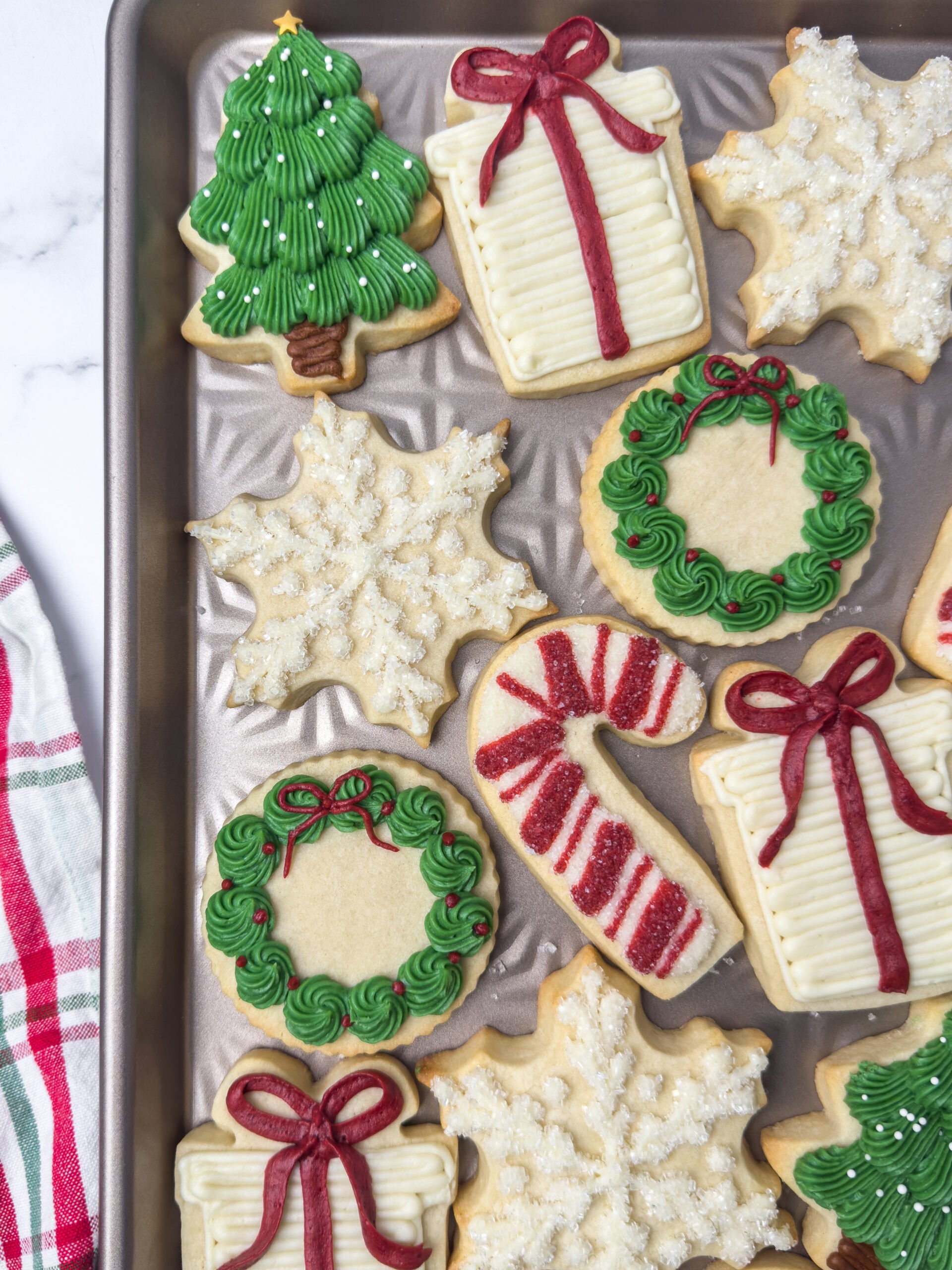 Soft, thick classic Christmas Sugar Cookies topped with creamy vanilla buttercream frosting. A nostalgic holiday favorite that all ages will love!